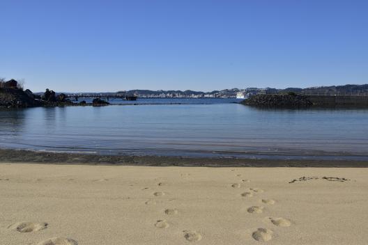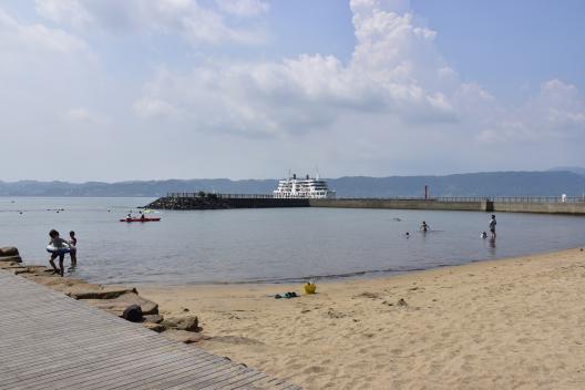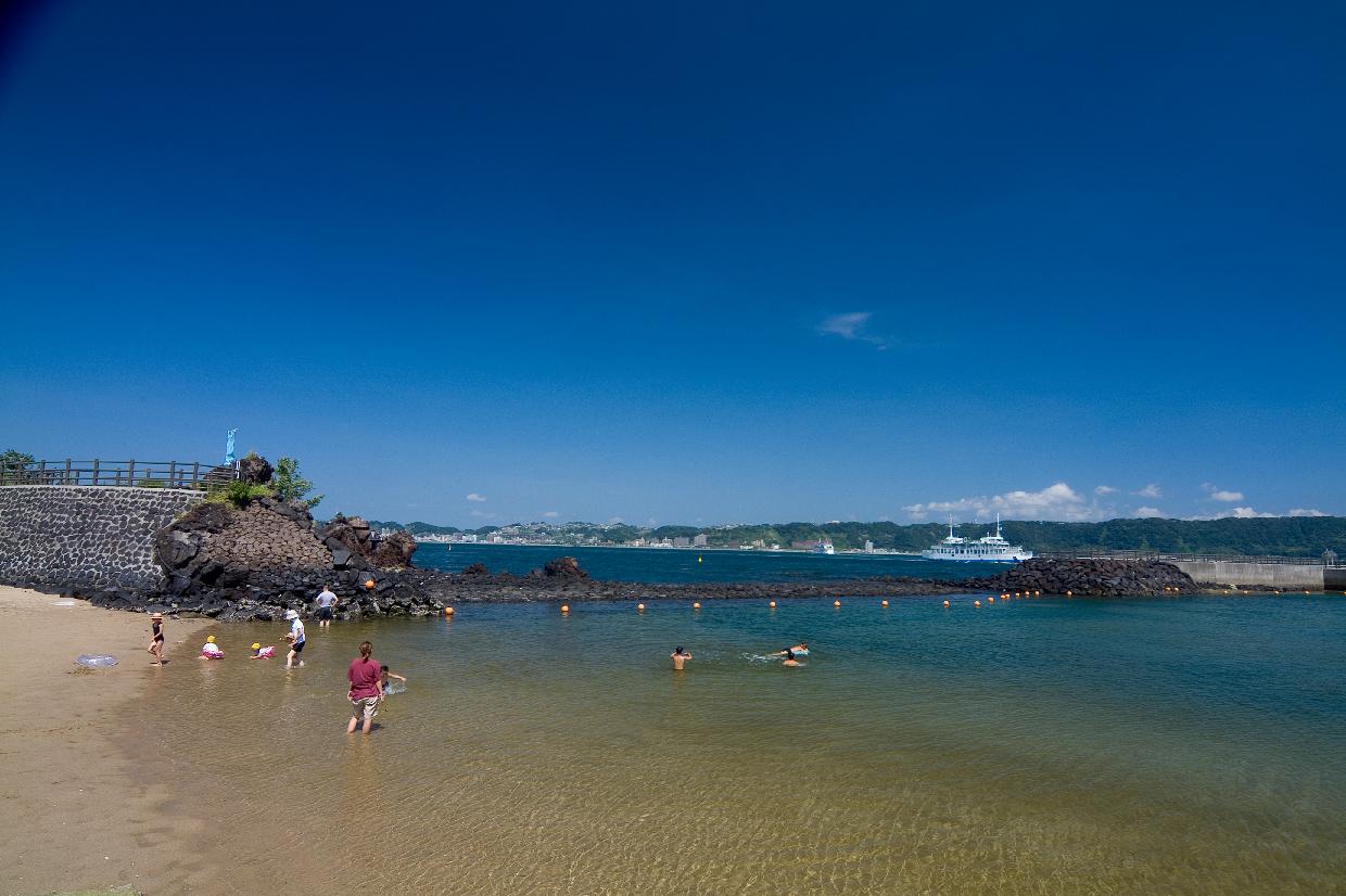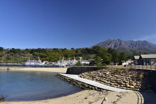사쿠라지마의 파도가 잔잔한 해수욕장