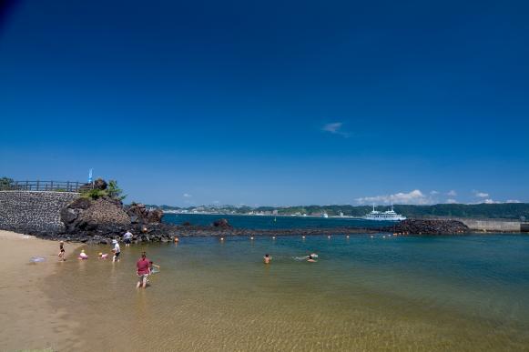 사쿠라지마에 있는 파도가 잔잔한 해수욕장. 화구에서 연기를 뿜어내는 사쿠라지마를 바라보며 즐기는 바다카약은 이곳에서만 가능한 귀한 체험. 바다에서 즐긴 후에는 이웃에 있는 레인보우 사쿠라지마에서 온천을 즐겨보시길 권합니다.