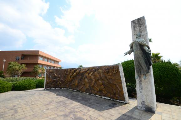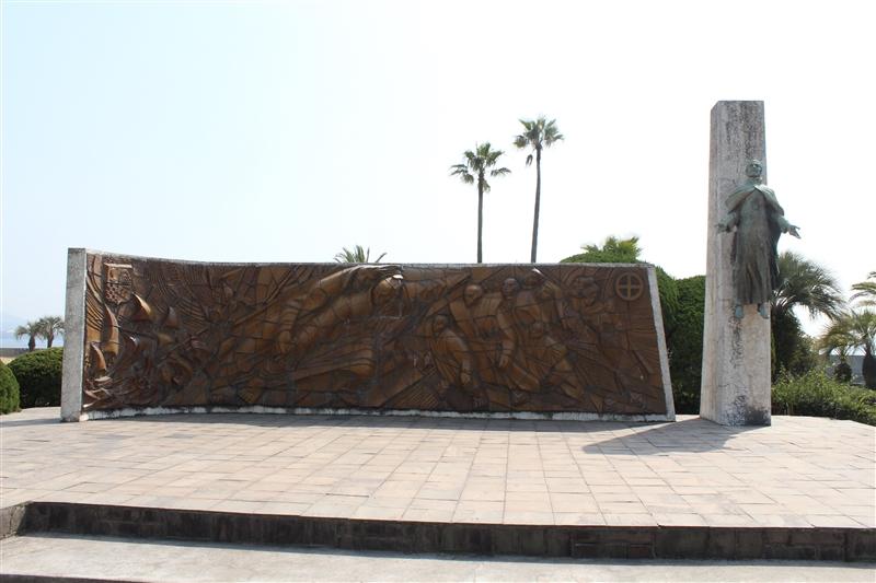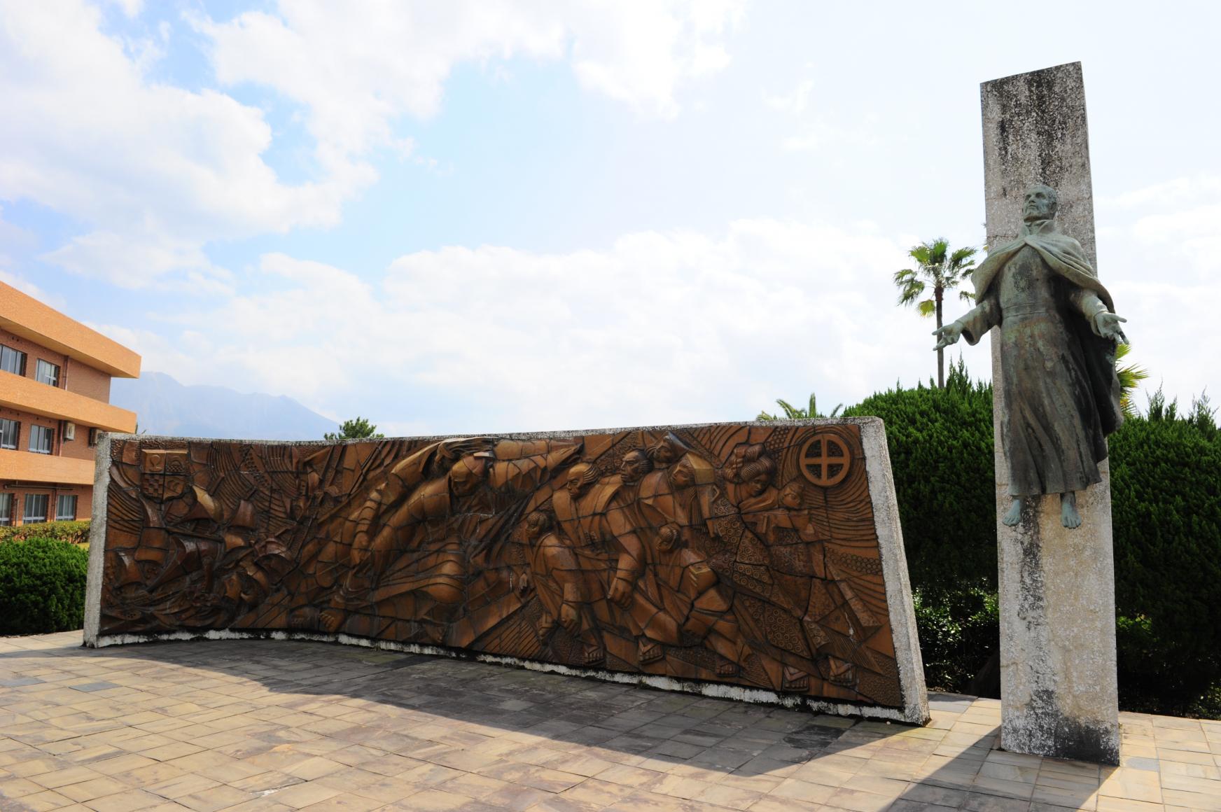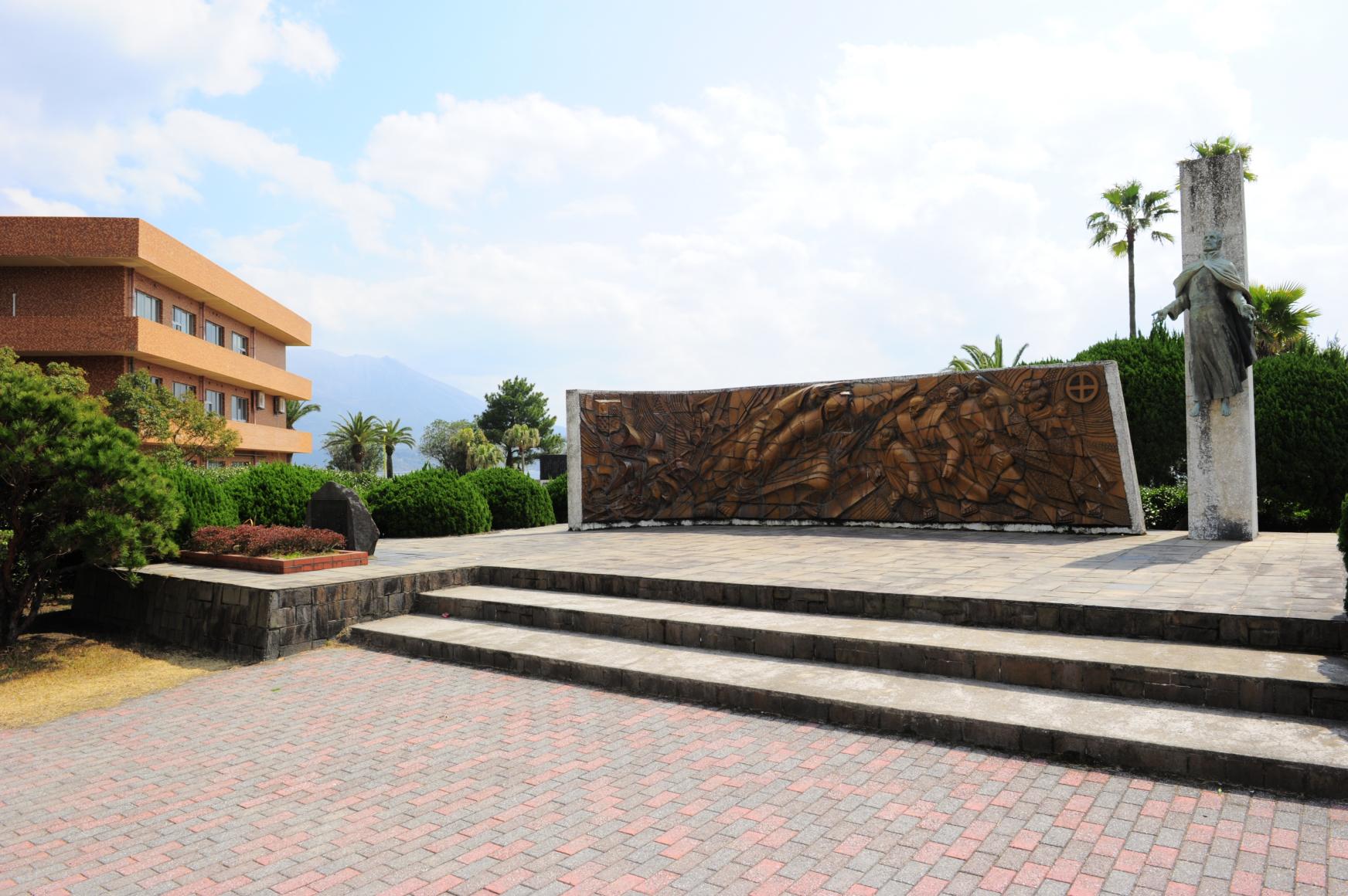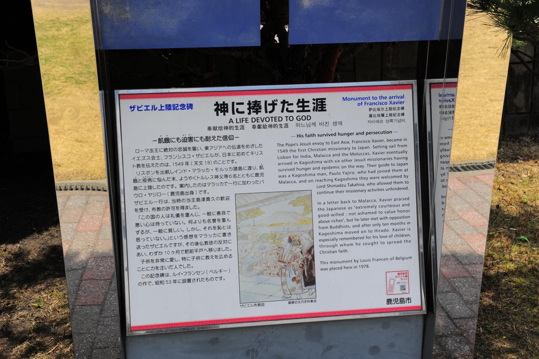 1549년, 프란시스코 자비에르가 가고시마에 상륙하여, 일본에서 처음으로 기독교를 포교한 것을 기념한 비석입니다. 자비에르가 상륙한 지점의 기념비는 긴코완에 접한 기온노스 공원의 한쪽에 세워져 있습니다.