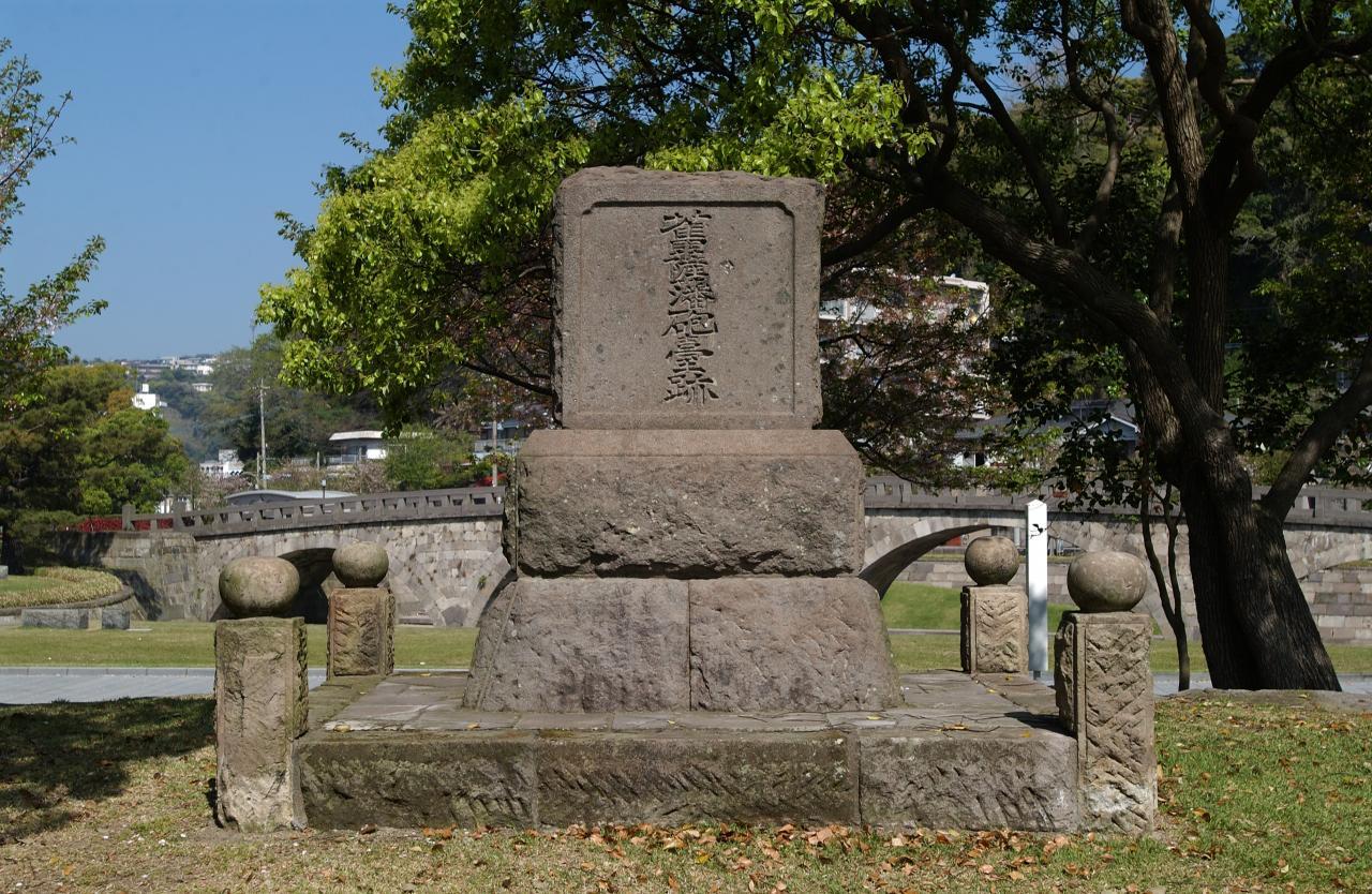 薩摩藩家老の調所広郷は、財政改革後、稲荷側に石橋をかけ、埋め立て地、祇園之洲を造りました。