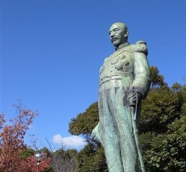 鹿児島港に入る艦隊から真正面に見える多賀山(たがやま)山頂には、日本海軍の連合艦隊司令長官となり、1905(明治38)年の日本海海戦で、丁字(ていじ)戦を使って、当時世界で一番強いと言われたロシアのバルチック艦隊を打ち破った東郷平八郎元帥の遺髪を葬った墓地と銅像(雨宮浩平作)があります。