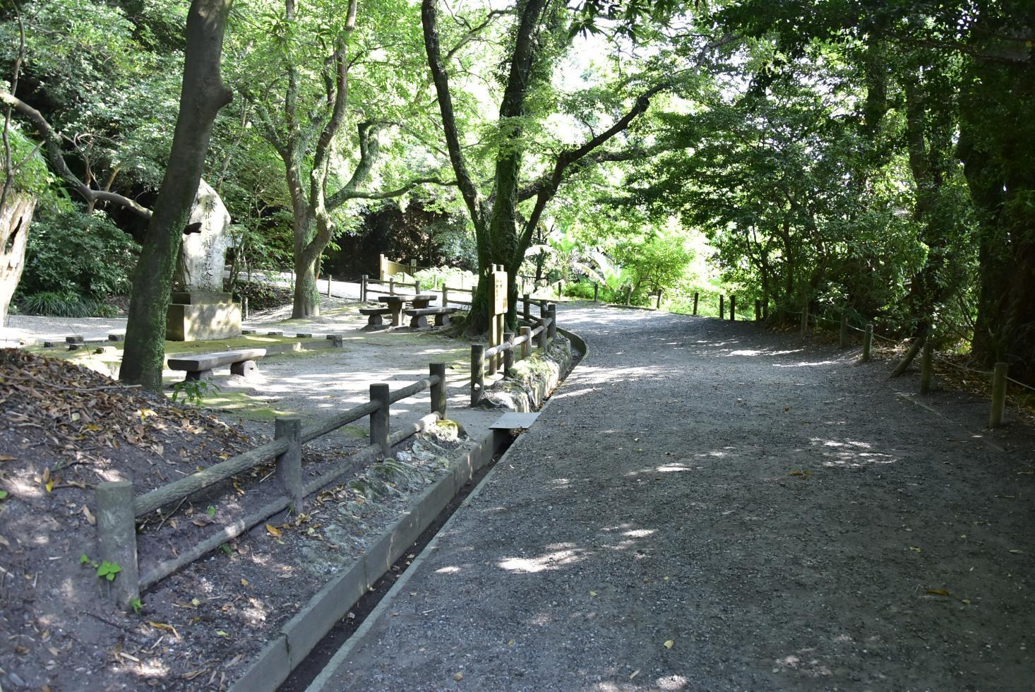 城山自然遊歩道には、照国神社横の探勝園と、岩崎谷の薩摩義士碑の2ケ所の入口があり、約2kmのコースは自然を観賞しながらの散策にぴったりです。