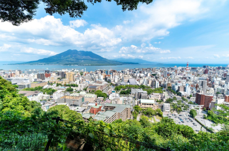 鹿児島市街地と錦江湾、桜島が望める展望台は、絶好の撮影スポット。天気の良い日には遠く霧島や指宿の開聞岳も見え、夜景が美しいことでも有名です。