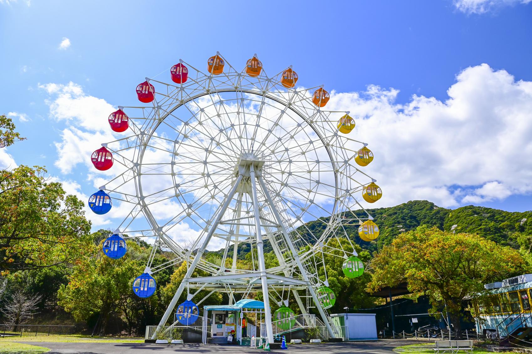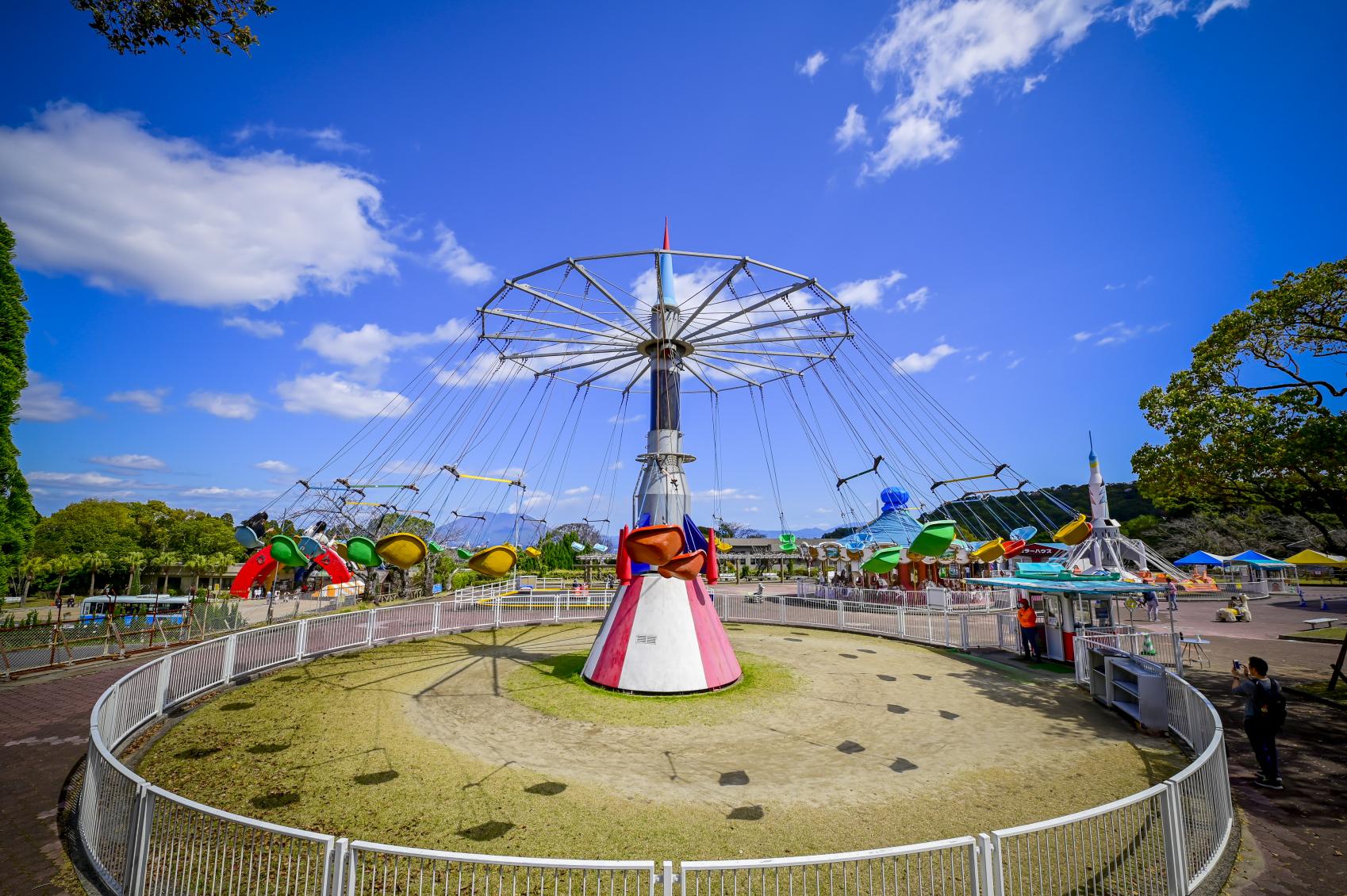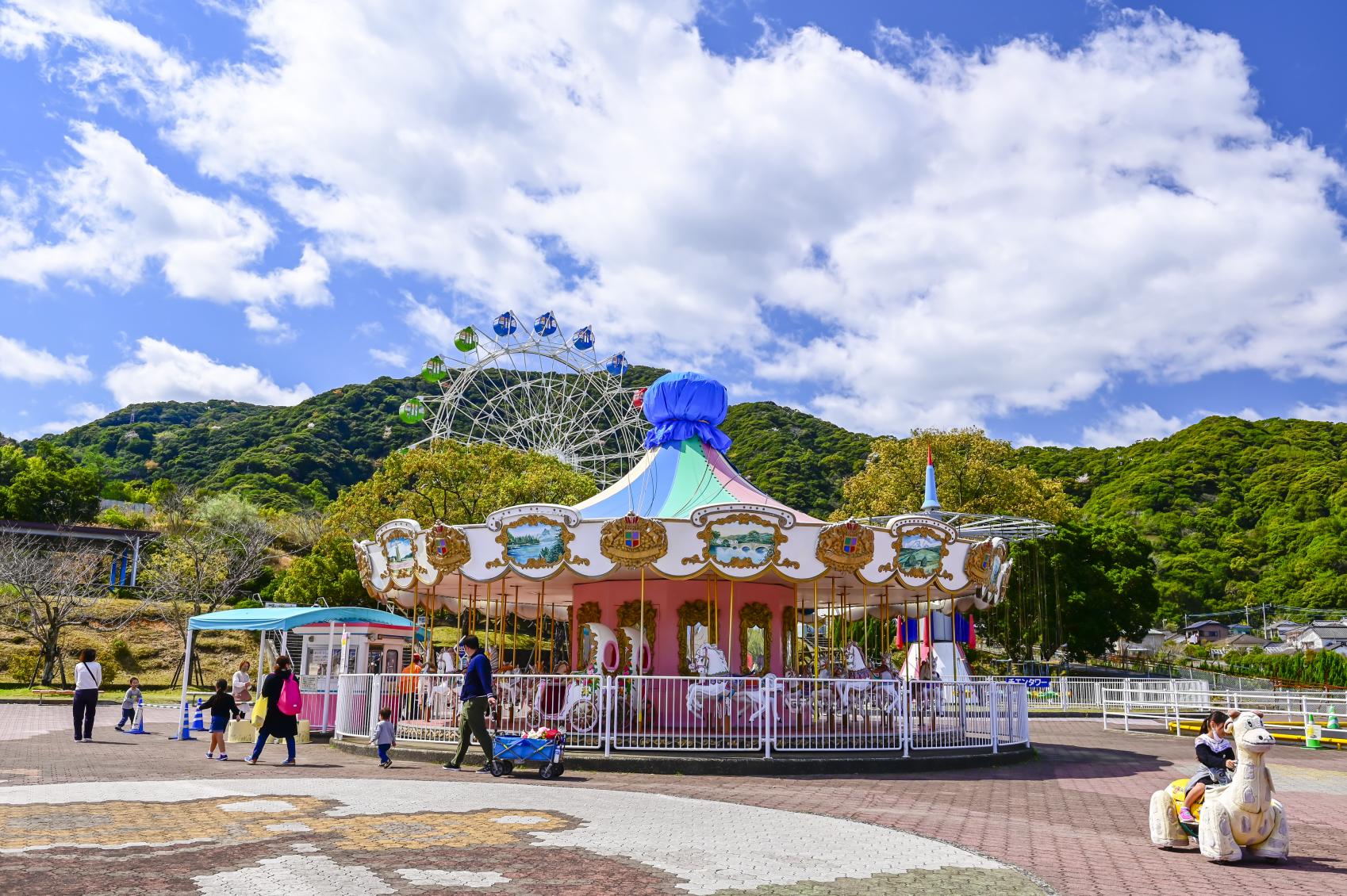 園内には、どこか懐かしい雰囲気の遊園地も併設されています。メリーゴーランドや観覧車、ゴーカートなど、家族みんなで楽しめます。