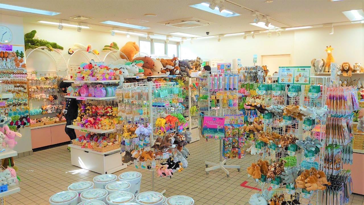 ショップでは、お菓子やぬいぐるみ、キーホルダーのほか、ここでしか手に入らないオリジナルグッズを販売しています。