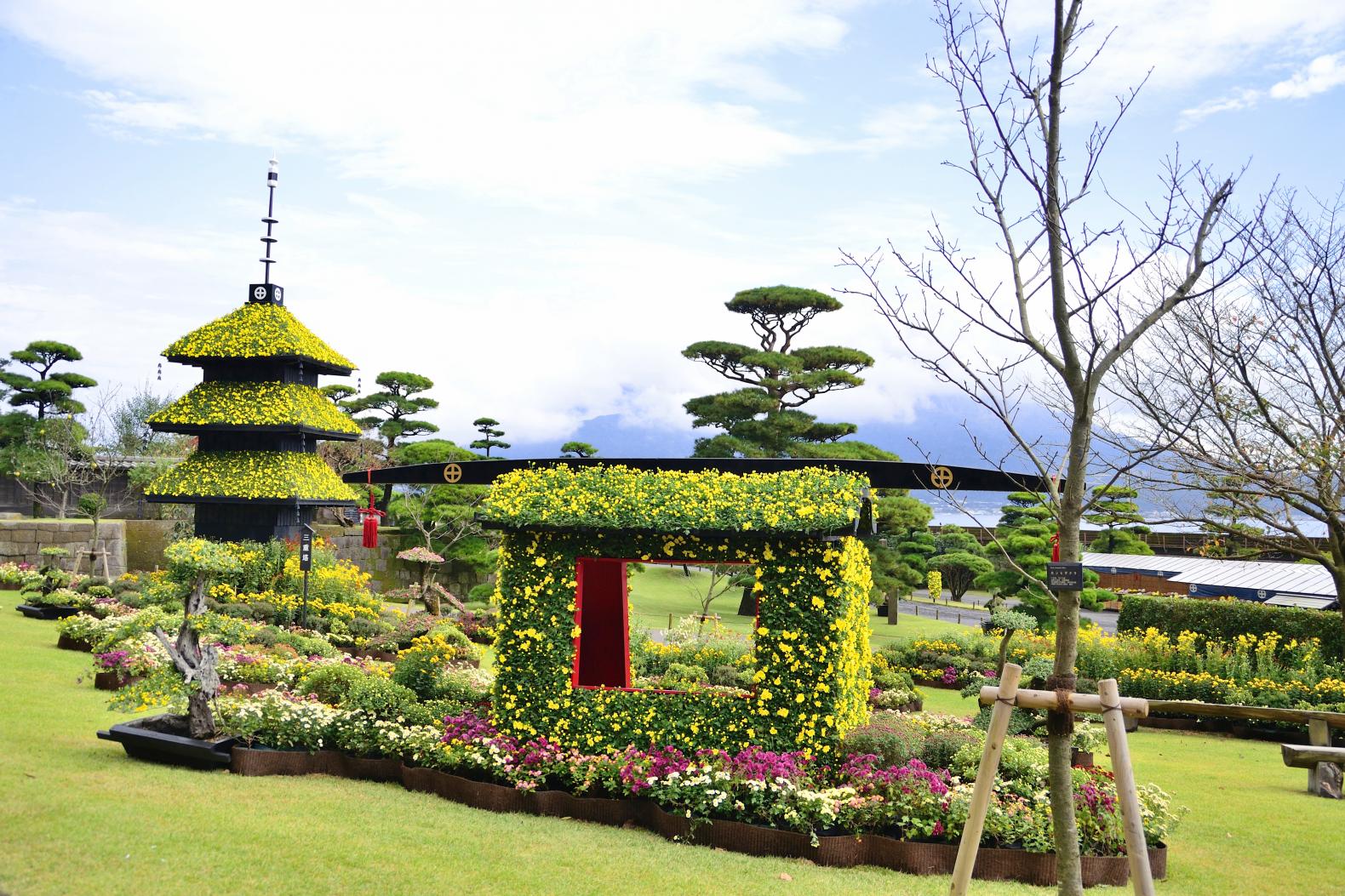 菊花三重塔や花籠など、撮影スポットが盛りだくさんです。