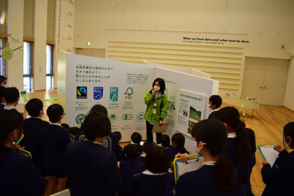 展示スペースは4つのゾーンに分かれており、映像や実際に手に取って動かす体験型の展示物などを通して、気候変動や生物多様性などについて楽しく学ぶことができます。