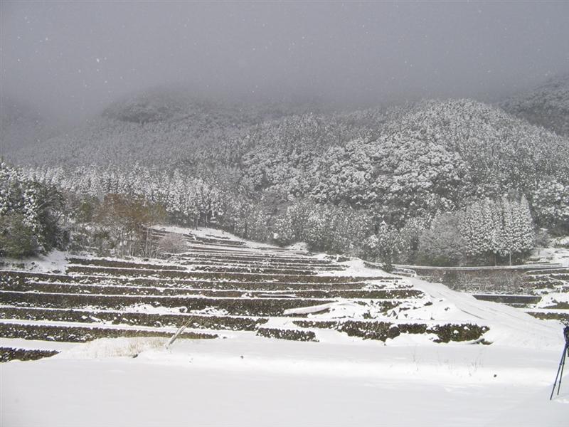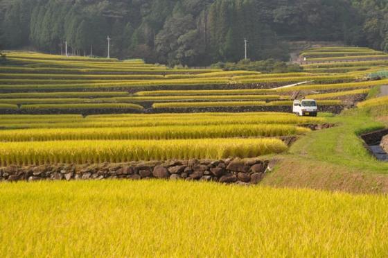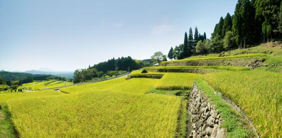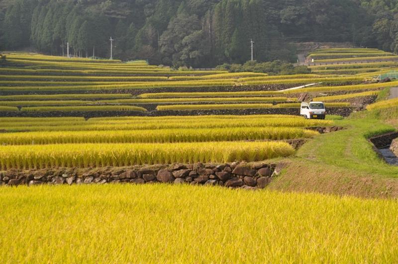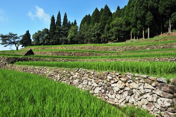 八重地区の急傾斜地に広がる、約240枚の石積みの棚田