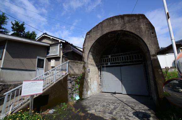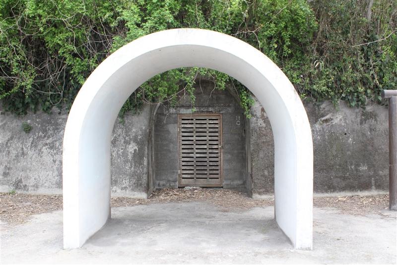 太平洋戦争末期、日本海軍の基地があった場所です。濠の高さ・幅はともに2~3m程で、手掘りによって作られたトンネルが網の目状に張り巡らされています。総延長は約650m。濠の中には魚雷保管室や動力室がありました。