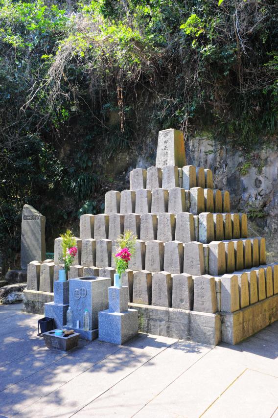 1753年、徳川幕府より課せられた尾張藩内での宝暦治水で命をかけ犠牲となった薩摩藩士を弔う史跡です。