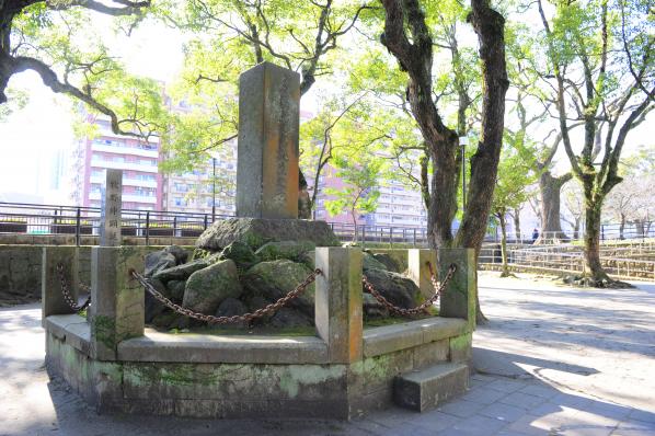1889年憲法発布に伴う大赦令で、西郷隆盛の賊名が削られ正三位の追贈を受けたことを契機に、東京にいた下加治屋町出身者が発起人となって二人の旧宅地に記念碑が建立されました。立案に際して、記念碑と碑文を全く同等に扱うこと、同種同数の樹木を植えることなどの顕彰を平等に扱う配慮がおこなわれています。