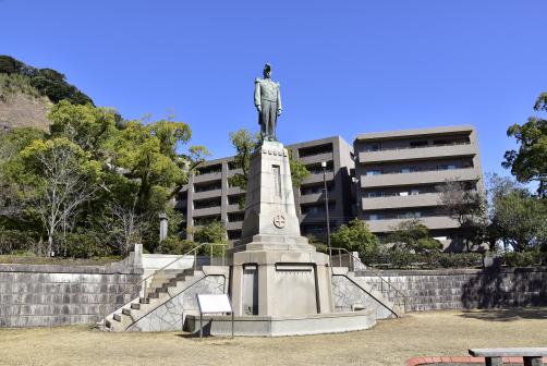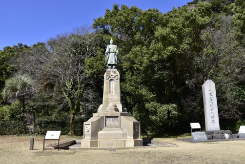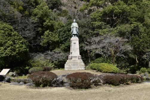 探勝園には、明治維新に大きく貢献した島津久光公・忠義公父子の銅像があります。上段が久光公、下段が忠義公の銅像です。斉彬公・久光公・忠義公の銅像は、大分県竹田出身の朝倉文夫がつくりました。