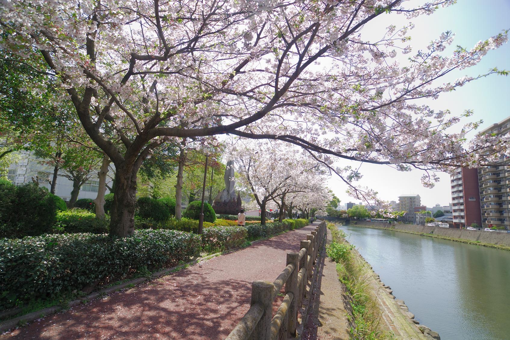 道路两旁的樱花树美丽无比,能感受到历史氛围的休憩之川