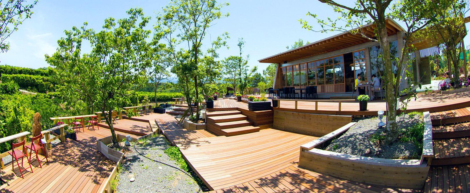 提供咖啡、無酒精飲料,並選用葉隙流光農場生產的草莓作成單片三明治、草莓聖代,輕食菜單相當豐富。開放式的展望露台深受顧客喜愛。