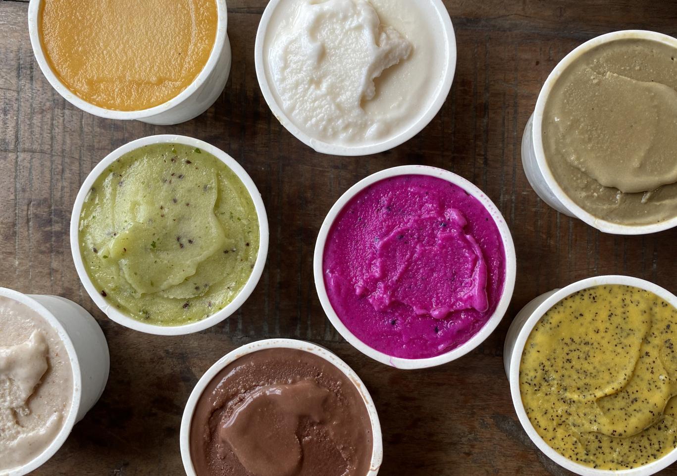 本店深受歡迎的素食義式冰淇淋,是以自家製作的新鮮豆漿為基底,使用大量鹿兒島當季盛產的蔬果所製作。不吃素的人也能試試看經低溫殺菌處理的特別牛奶所製成的醇厚娟珊牛牛奶義式冰淇淋!