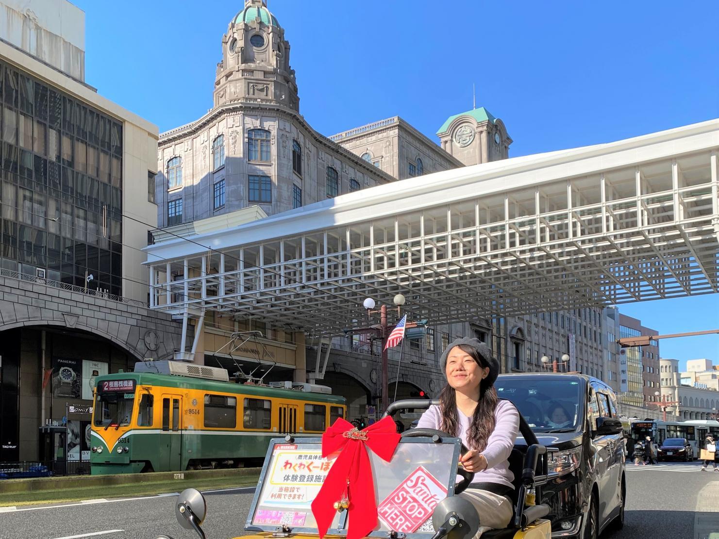 從MJ PLAZA出發,前往路面電車及車流交匯的天文館商圈。看整體外觀被綠植覆蓋的丸屋花園、風情十足又充滿威嚴的山形屋映入眼角,為兜風之旅添增色彩。山形屋週邊有一條商店街,從以前到現在一直是人潮不斷的熱鬧地帶。