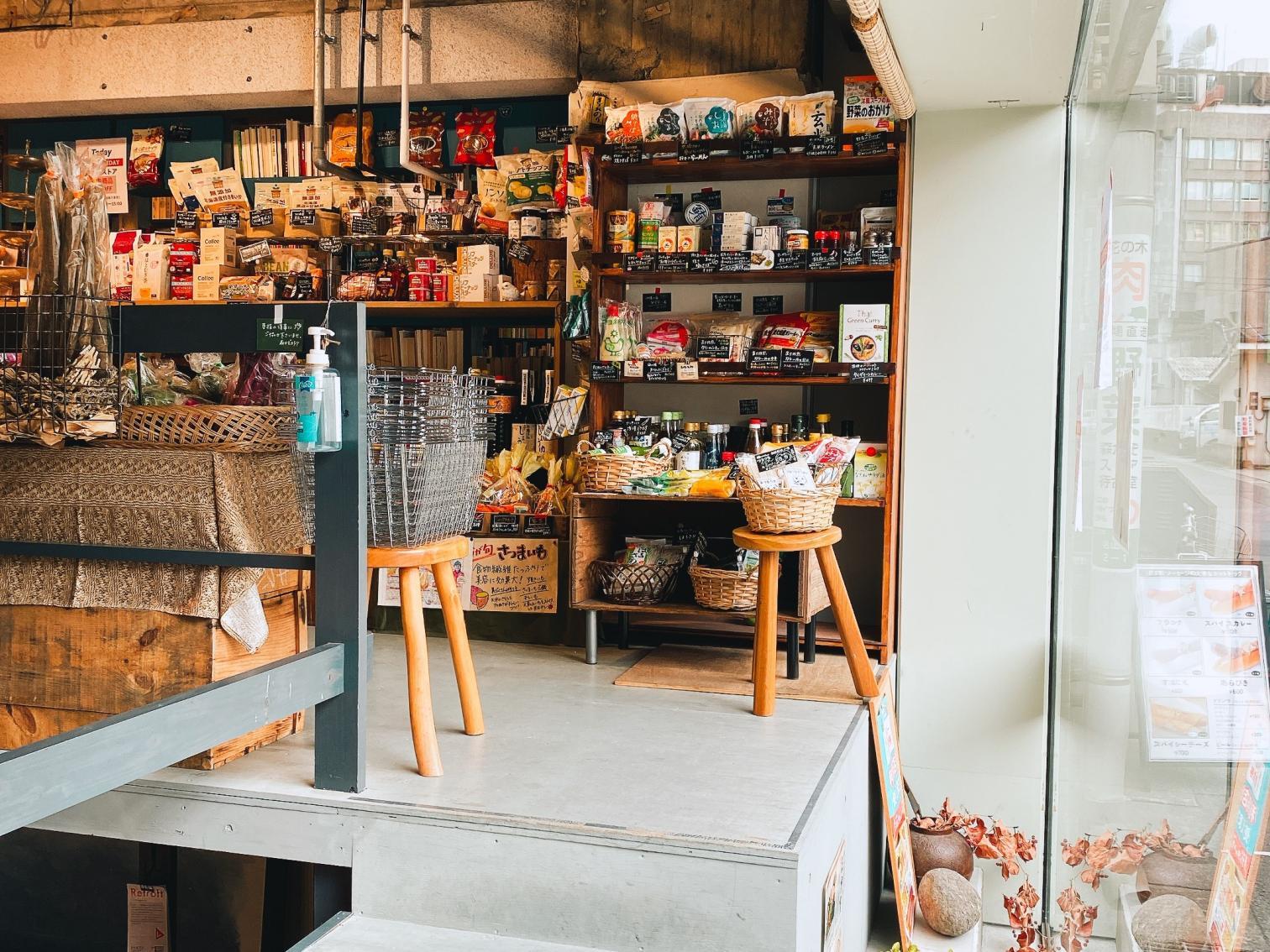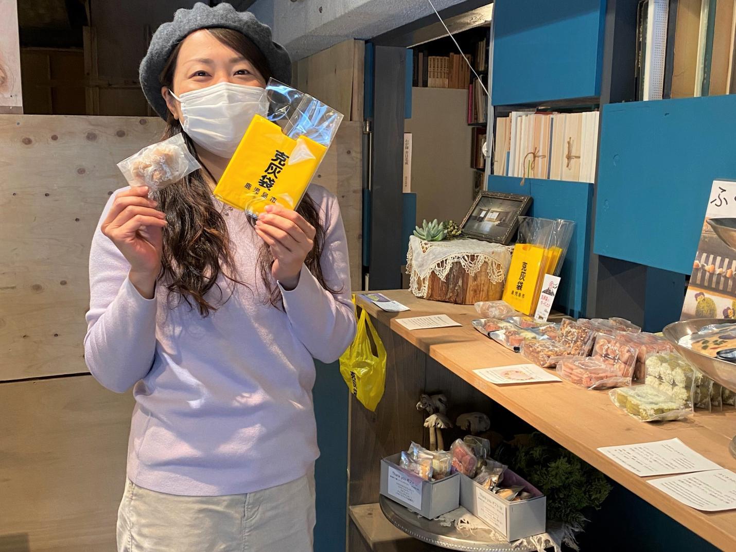 喝杯咖啡休息過後,將迷你吉普車停在停車場,到名山地區散步。來到翻新過的老建築‧Retroft千歲大樓,在「農園食堂 森之家族」附設的「森家族商店」挑選伴手禮吧!店裡主要販售有機蔬菜和加工品,其中值得關注的是將鹿兒島鄉土點心發揮巧思創新的餅乾「FUKU+RE」。買來的點心裝在用來裝櫻島火山灰、鹿兒島特有的「克灰袋」迷你版小袋子,送給親朋好友,對方一定會笑得樂不可支吧!