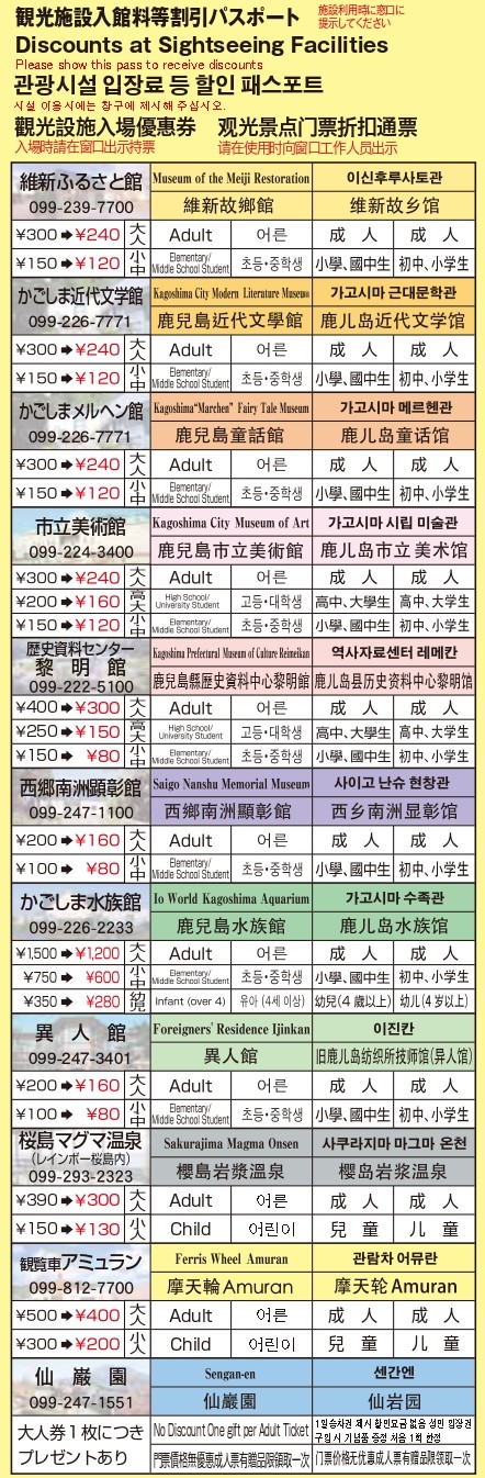 CUTE還附贈維新故鄉館、仙巖園、鹿兒島水族館等超過10個主要觀光景點的優惠護照。