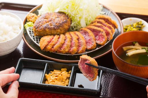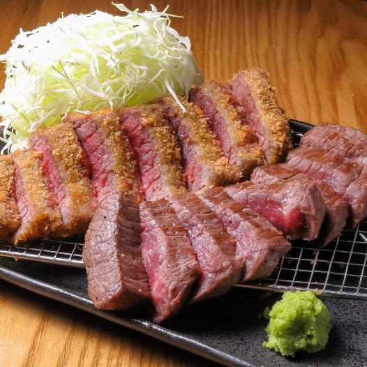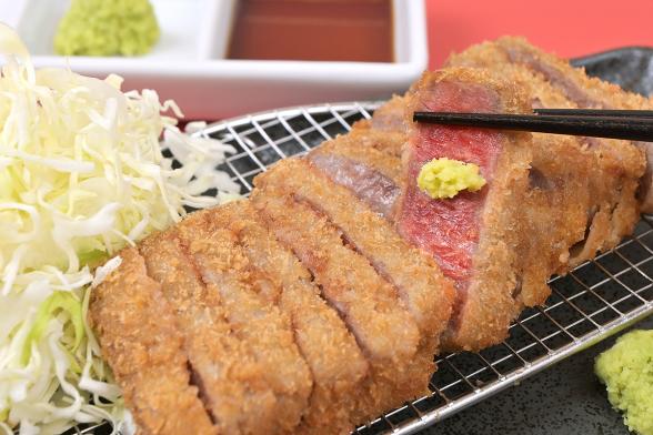 炸牛排是知名的鹿兒島地方美食,主要使用鹿兒島產的黑毛和牛,完美展現出牛肉原有的鮮美風味。選用瘦肉並包裹薄麵衣後炸製,呈現清爽口感。