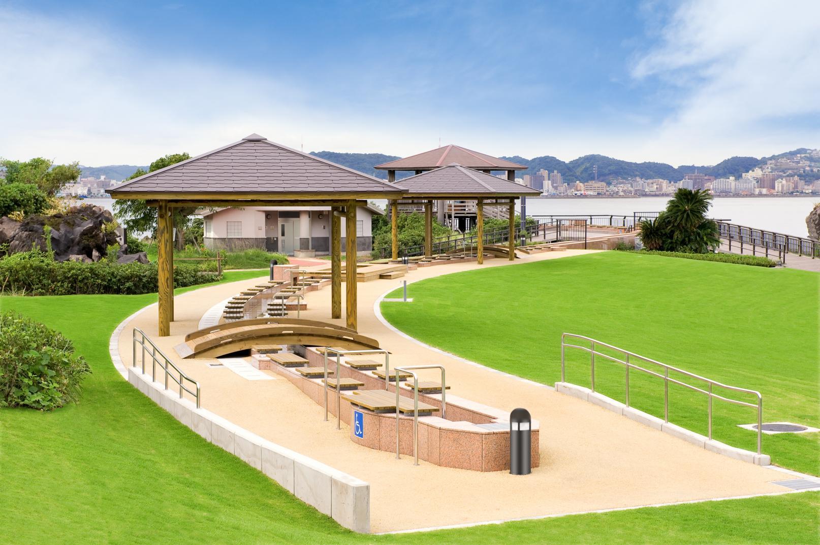 櫻島遊客中心附近有步道、展望台、全長約100公尺的足湯等許多魅力十足的景點。